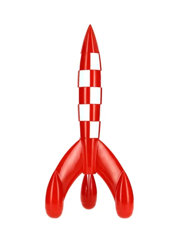 El cohete lunar, decorado con un tablero de ajedrez rojo y blanco, se ha convertido en un símbolo real no solo del trabajo de Hergé, sino también de los cómics en general.