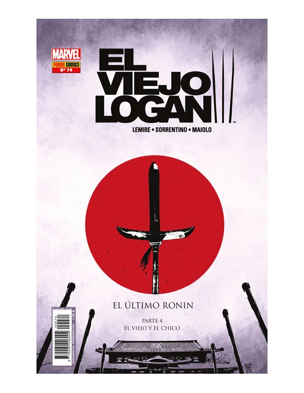 Contiene Old Man Logan v2, 12 USA Con la cuarta parte de El último Ronin . Logan se enfrenta a su peor adversario hasta la fecha: su propio pasado. Una misteriosa orden de monjes silenciosos tiene a Lobezno contra las cuerdas... no sólo en su presente, sino también en su pasado.