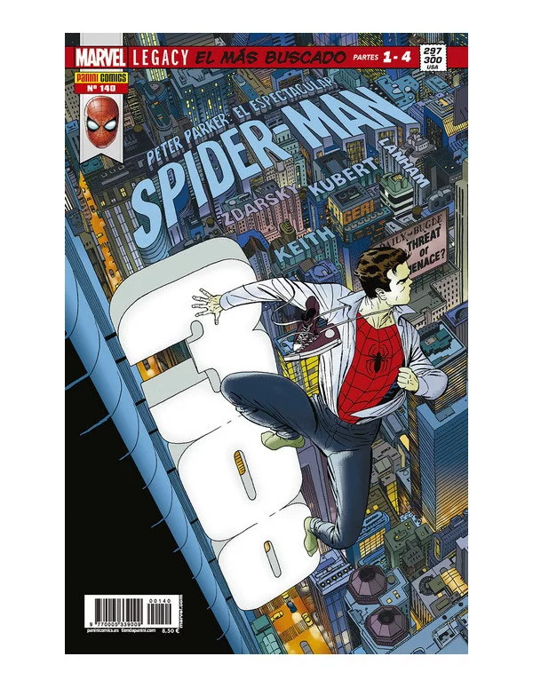 Marvel Legacy. “El más buscado”, partes 1-4. La segunda colección del trepamuros recupera su numeración histórica a tiempo para un relato en que el trepamuros se ha convertido en persona non grata para la policía de Nueva York... ¡y todos lo persiguen!