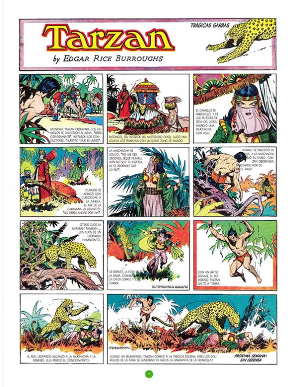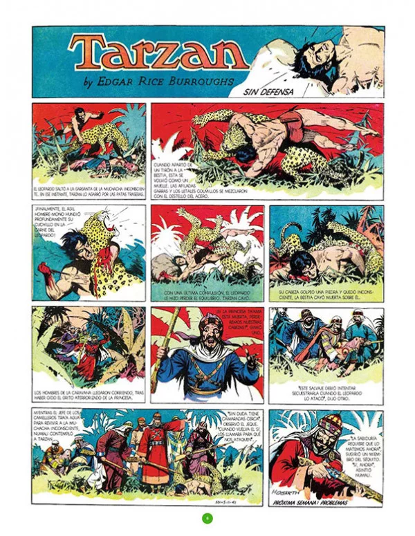 El África misteriosa donde vive Tarzan acaba por convertirse en autopista a la aventura de todo tipo y nivel una especie de cruce de caminos místicos e históricos, casi un mundo apartado del tiempo, donde alternan civilizaciones perdidas y razas ocultas. Burne Hogarth descubre y saca partido a la viñeta grande y espectacular, mientras las andanzas del hombre-mono desembocan inevitablemente en lo fantástico