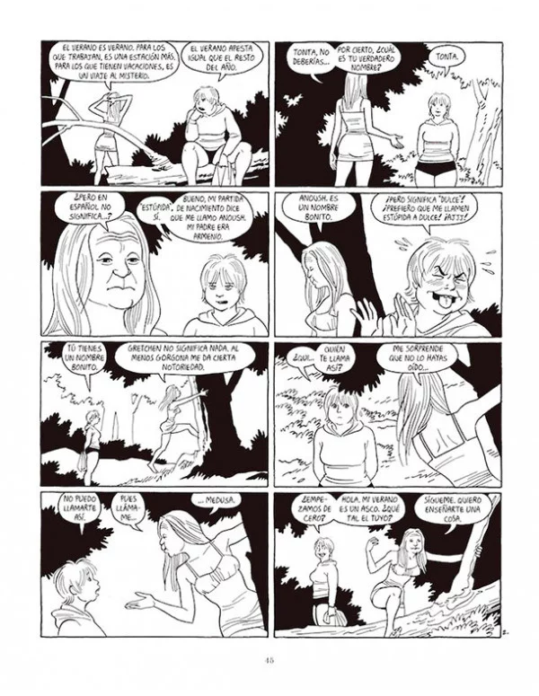 Tonta está pasando el fin de semana en casa de su exuberante hermanastra Vivian Solis, que últimamente, y para variar, está teniendo problemas. Mel Spropp, viejo amigo de su madre, parece dispuesto a contratarla en el Cobia Club, pero todavía es pronto para saberlo. Entretanto, la enigmática Gretchen canta los misterios del verano en el corazón del bosque, una banda de punk llamada Ooot parte la pana entre la chavalería local y el padrastro de Tonta resulta herido de gravedad durante un intento de robo. ¿Y si en lugar de un intento de robo fuera la maniobra criminal de algún miembro de la familia? Uf, la solitaria Tonta, que en realidad se llama Anoush, está a punto de enterarse de un montón de secretos en este verano de mierda. Cuando Maggie, Hopey y el resto de sus protagonistas ya son mujeres hechas y derechas, Jaime Hernandez siente el impulso de volver sobre los misterios de la adolescencia, y para ello acude a Tonta, que resultará en otro personaje memorable para el universo de Locas. Con su estilo episódico característico y sirviéndose de ese blanco y negro exacto, Jaime nos sumerge en otra historia coral, nos enreda en árboles genealógicos y de nuevo nos hace sentir que somos nosotros quienes estamos completando pasajes, armando el puzzle, siendo parte inexcusable de una de las sagas más ricas y emotivas del cómic contemporáneo, una interminable obra maestra que vuelve a verse ampliada en este libro sexy, intrigante y profundamente humano.
