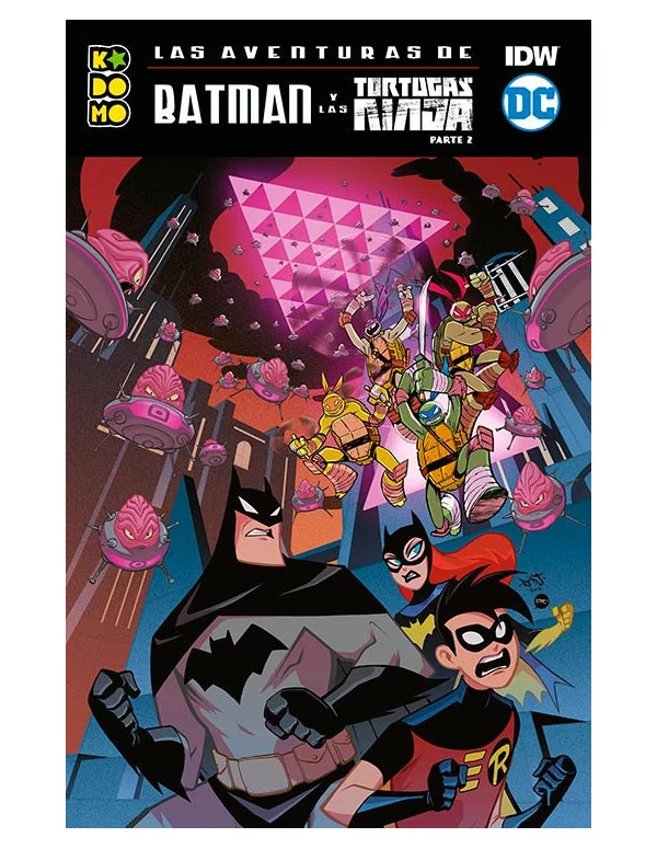 ¡Última entrega! El Hombre Murciélago y las Tortugas Ninja continúan formando equipo para tratar de neutralizar el plan que amenaza con sembrar el caos en Nueva York y en Gotham City. Shredder, el Joker, Harley Quinn, el Espantapájaros y el Sombrero Loco se cruzarán en sus caminos, ¿pero quién es la mente maestra culpable de esta situación? Batman, Michelangelo, Leonardo, Raphael y Donatello tratarán de averiguarlo, con la inestimable colaboración de aliados como April O’Neil, Batgirl, Nightwing y Robin. ¡El crossover definitivo entre estos grandes iconos de la cultura popular llega a su fin! Las aventuras de Batman y las Tortugas Ninja - Parte 2 recopila los números del 4 al 6 de la miniserie original, poniendo punto y final a una trama trepidante y divertida, ideal para lectores de todas las edades. ¡COWABUNGA!