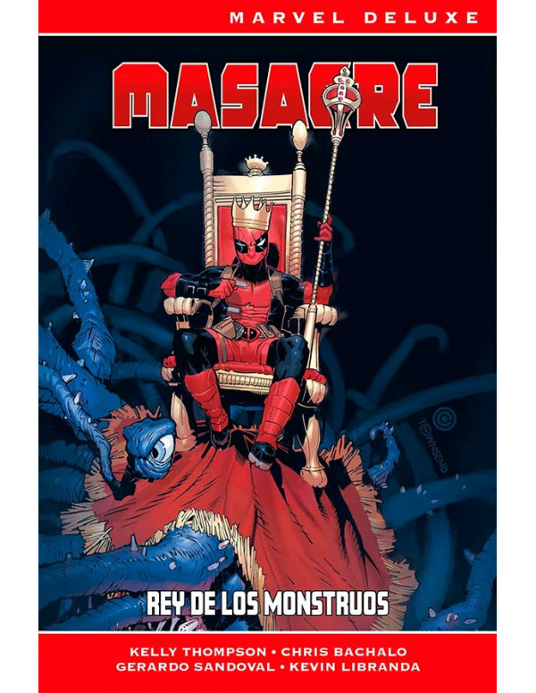 La etapa completa de Kelly Thompson como guionista del Mercenario Bocazas en un único tomo. ¡Salve al Rey! Llega el cambio más improbable en la carrera de Masacre: convertirse en el Rey de los Monstruos de Staten Island. Pero su alteza real pronto se va a ver envuelto hasta el cuello en intrigas políticas, se enfrentará a grandes obstáculos, que incluyen al Capitán América y a Elsa Bloodstone, y luchar contra individuos dispuestos a acabar con su reinado, como Kraven el Cazador. Además... ¡las aventuras de Wade y Jeff, el tiburón de tierra!