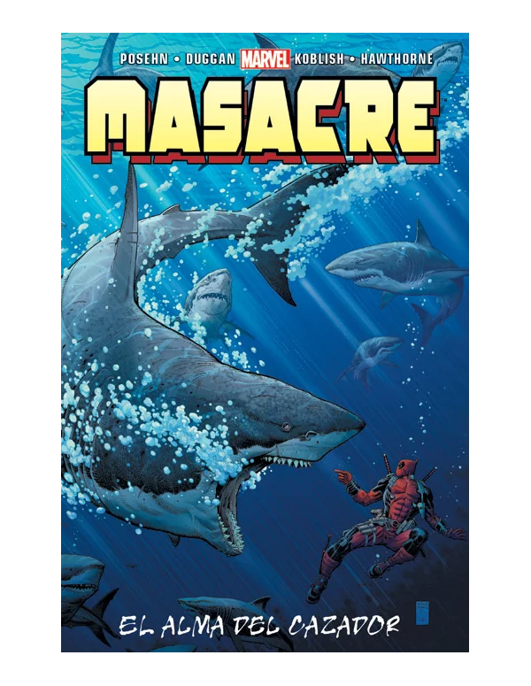 Un nuevo tomo del Mercenario Bocazas, que comienza con una nueva aventura de Masacre ambientada en el ayer del Universo Marvel, y que en este caso implica uno de los acontecimientos más importantes de la vida de Iron Man. A continuación, un demonio contrata a nuestro antihéroe para reclamar algunas almas condenadas, se enfrenta contra un hombre con poderes acuáticos (qué ridículo, ¿verdad?) y ayuda al Spiderman Superior. Por cierto, ¿crees que se van a caer bien? Aquí tienes nuevas muestras de la hilarante reinvención que han hecho Gerry Duggan y Brian Posehn de Masacre.