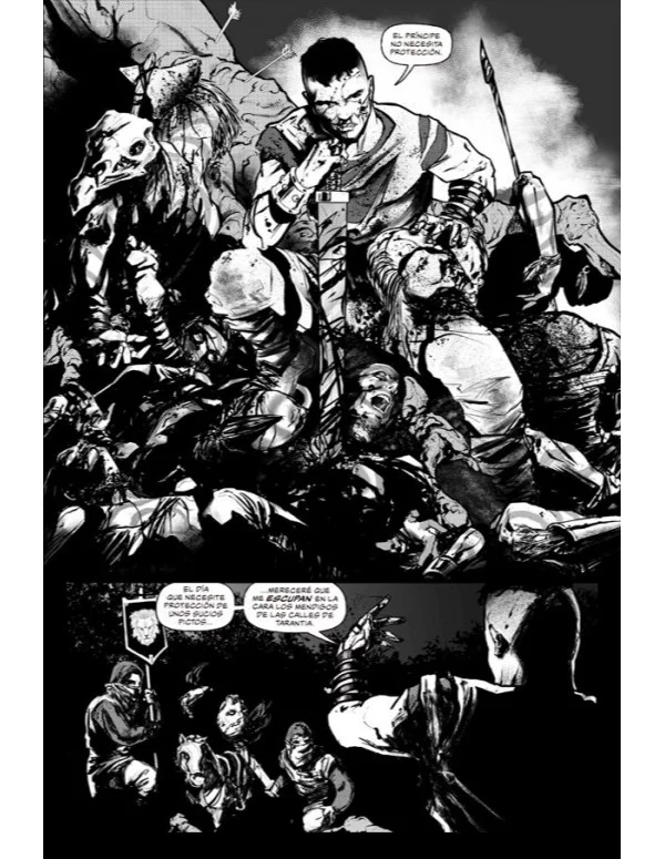 Al fin, la aclamada obra de EL TORRES y JOE BOCARDO, junto a MANOLI MARTÍNEZ, en la edición de lujo que los aficionados al bárbaro cimmerio esperaban, donde nos adentramos una aventura que profundiza sobre los conflictos entre civilización y barbarie, entre padre e hijo, además de un sentido homenaje, junto a un profundo estudio sobre los personajes creados por ROBERT E. HOWARD.