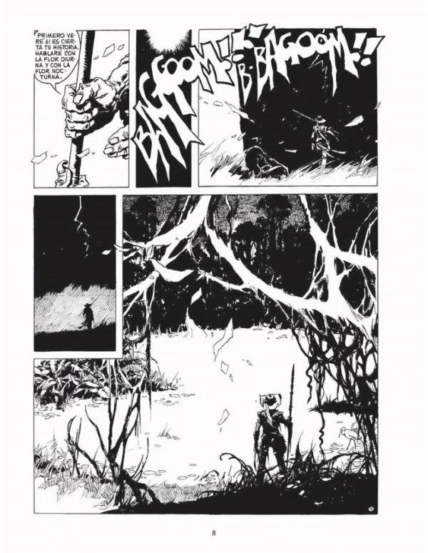 En un Nuevo Mundo donde la justicia todavía no ha desembarcado, la ley de la selva es quien dicta sentencia, sin piedad ni misericordia, dividiendo a los hombres entre los que se disponen a matar y los que se preparan para morir. La espada y la cruz deciden el destino de todos quienes remueven estas tierras en busca de oro y gloria. Pronto, el nombre y el acero del hijo del cartógrafo que acompañó a Pizarro al Perú, se erigirá como el salvador de todos aquellos cuyos sueños de fortuna pueden convertirse en pesadillas. Dos leyendas del cómic internacional como Carlos Trillo (Husmeante) y Enrique Breccia (El Peregrino de las Estrellas) firman en Alvar Mayor un relato plagado de detalles, simbolismo y poesía surrealista en el que exploran el mapa perdido de un continente mitológico en base a fábulas, profecías, fuego, y sombras.