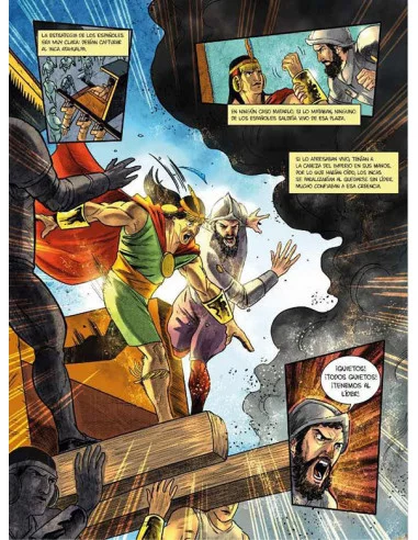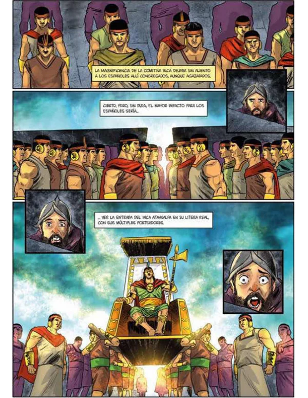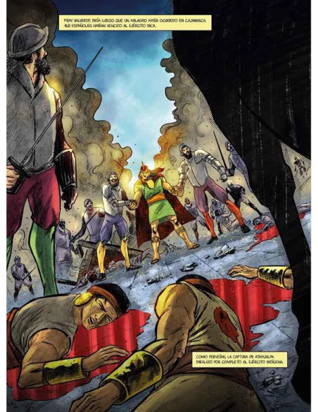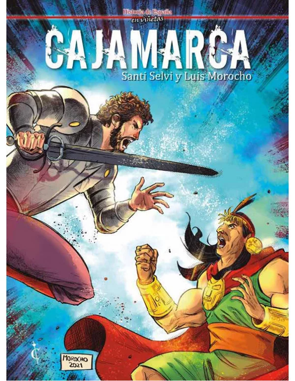 En 1532 el Imperio inca está en su apogeo. Su territorio (el llamado Tahuantinsuyo) representa el imperio más extenso de toda la América precolombina, abarcando los actuales territorios de Perú, Bolivia, Ecuador, Chile, Argentina y Colombia. Tras la muerte en 1525 de Huayna Cápac, la guerra civil desatada entre sus hijos Huáscar y Atahualpa acababa de concluir con la victoria de este último, que se había erigido en el sapa inca. El conquistador trujillano Francisco Pizarro, junto a 168 soldados, penetra en el Tahuantinsuyo. Este primer contacto entre dos civilizaciones absolutamente diferentes (la española y la inca) se produjo en la ciudad de Cajamarca. Técnicas marciales diferentes, idiomas diferentes, religiones diferentes, culturas diferentes , todo ello confluyó en Cajamarca. Huyendo tanto de la leyenda negra sobre la conquista española de América como de partidismos absurdos, este álbum narra los decisivos hechos ocurridos en Cajamarca los días 15 y 16 de noviembre de 1532, que marcaron el mayor punto de inflexión en la historia de Sudamérica.