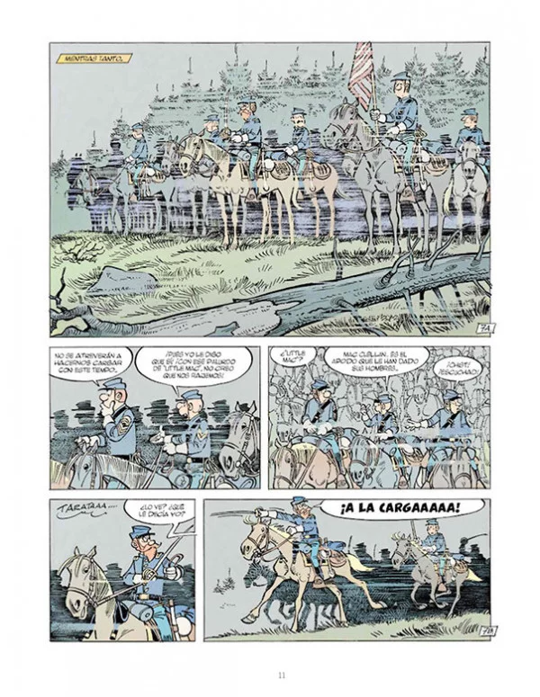 Para nuestros héroes Blutch y Cornelius Chesterfield, la vida en la caballería es una aventura diaria. Así lo demuestran sus tres nuevas hazañas: en Duelo en el Canal de la Mancha, por primera vez pisarán suelo europeo; en Los ocultados, el sargento Chesterfield recibe la misión de tomar el mando de un pelotón muy peculiar; y los autores Cauvin y Lambil ofrecerán una aguda crítica a la manipulación informativa en Puppet Blues. Los extras incluyen un interesante dosier sobre los pioneros de la fotografía en el Oeste.