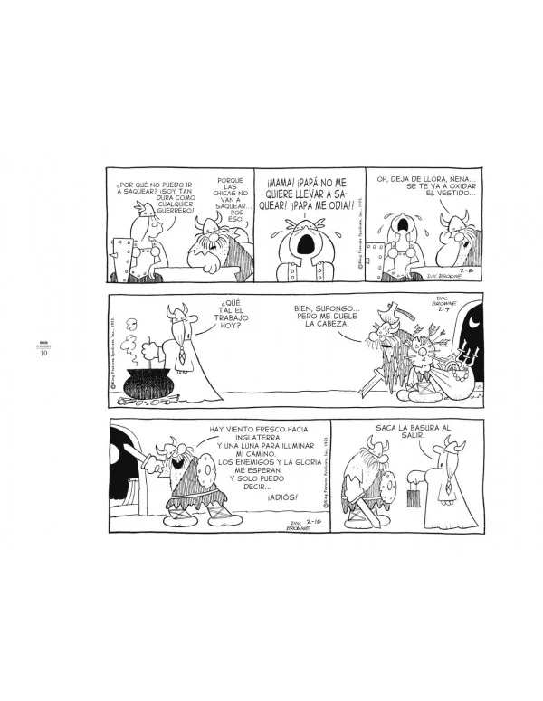 La familia se completa con Honi, guapa valkiria que solo piensa en encontrar un novio que no se asuste de su aspecto guerrero, y con Hamlet (estamos en Dinamarca, a fin de cuentas), un niño sensible y culto que lee libros y tiene la peregrina idea de que la Tierra es… ¡redonda!