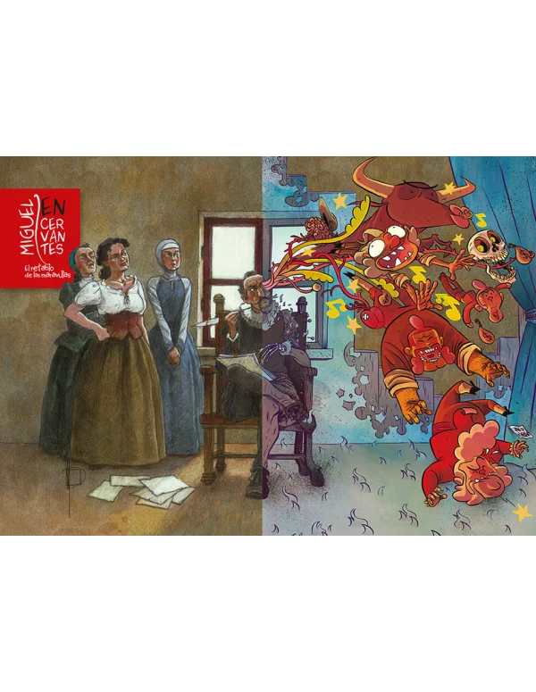 Coeditan: Acción Cultural Española (AC/E) y Astiberri Ediciones. Miguelanxo Prado y David Rubín, dos referentes del cómic español, abordan la vida y la obra de Cervantes Cervantes es uno de los grandes escritores españoles de la literatura universal, sin embargo, el personaje detrás del escritor sigue siendo misterioso: el Quijote eclipsó a Cervantes, a él, y a gran parte de su obra. El catálogo, coeditado entre Astiberri y Acción Cultural Española (AC/E), acompaña a la exposición Miguel EN Cervantes. El retablo de las maravillas , que han organizado AC/E, la Comunidad de Madrid y el Instituto Cervantes con motivo del 400 aniversario del fallecimiento del escritor en 2016, y concebida y comisariada por el equipo i con i . La muestra, que podrá verse en el Museo Casa Natal de Cervantes de Alcalá de Henares a partir del próximo 16 de octubre, y en versión itinerante en sedes internacionales del Instituto Cervantes, pretende mostrar al Miguel de Cervantes más conocido –el que combatió en Lepanto y el que estuvo secuestrado en Argel–, y al más desconocido –el que fue espía, espadachín, recaudador de impuestos, el que trabajó para la Iglesia o el que fue excomulgado en dos ocasiones–. Para tal propósito, dos grandes nombres del cómic español, Miguelanxo Prado y David Rubín, indagan en la vida y en la obra de Cervantes: Prado ilustra la biografía del escritor, dividida en capítulos temáticos, mientras Rubín adapta al cómic El retablo de las maravillas, una de las obras que Miguel de Cervantes no vio representada en vida. Este entremés satírico y de gran carga autobiográfica juega con el binomio ficción-realidad y sirve para descubrir las conexiones que existen entre esta obra y la biografía de Cervantes.