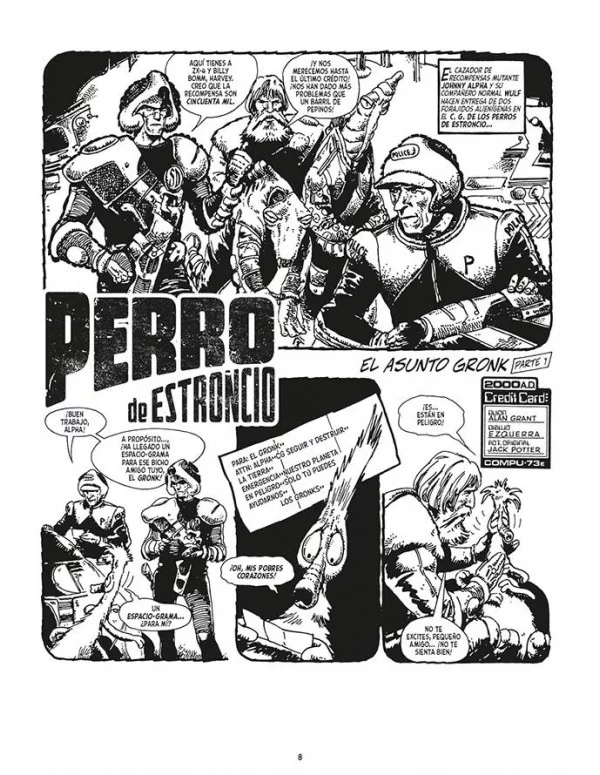El cazarrecompensas mutante Johnny Alpha y su compañero de aventuras Wulf Sternhammer recorren la galaxia ejecutando diversas misiones en las que impartir justicia... o con las que llenar sus bolsillos. Sus nuevas andanzas les llevarán al planeta natal de los Gronks para salvarles de unos Perros de Estroncio traicioneros o hasta el mundo de Nomi, donde descubrirán en persona el poder de la Isla de los Muertos Vivientes. Tras la ya histórica saga Retrato de un mutante, John Wagner (Una historia de violencia), Alan Grant (Juez Anderson: Shamballa) y Carlos Ezquerra (Juez Dredd) siguen al frente de las aventuras de Johnny Alpha. Este volumen continúa la recopilación cronológica de las aventuras originales de Perro de Estroncio, llegando hasta el ecuador de los años ochenta e incluyendo varias historias clásicas inéditas en España hasta la fecha. "Los relatos clásicos que forjan el carácter de una serie.