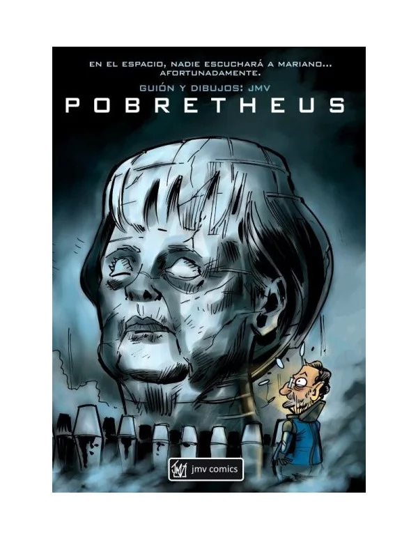 Primer cómic de Economía Ciencia-Ficción, que JMV ha tenido la oportunidad de editar a través de crowdfunding (Verkami.com). Se trata de POBRETHEUS, una parodia de la conocida película de Ridley Scott, precuela de ALIEN, y que sirve de base para hacer una feroz crítica de la situación económica actual. La pasividad gubernamental, el nepotismo, los aprovechados, el poder de la banca, las conspiraciones políticas internas de ciertos partidos, incluso habrá espacio para los sobres en "B"... Todo ello se fusionará sorprendentemente con la película, ofreciendo un resultado divertidísimo que no dejará títere con cabeza. ¡No os lo perdáis!