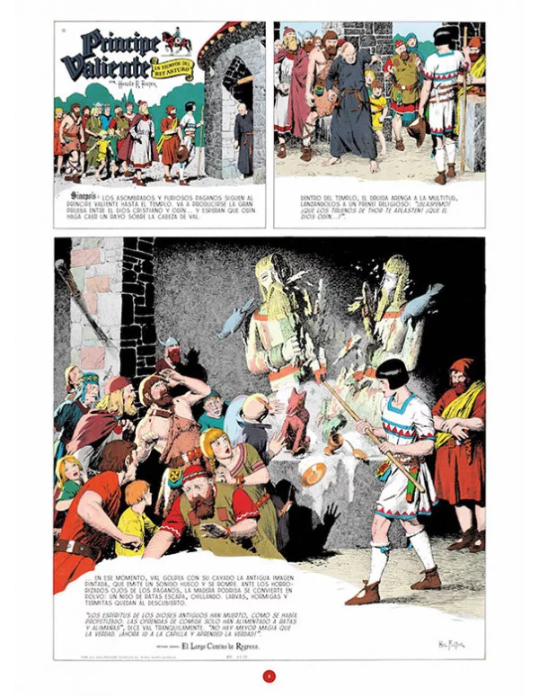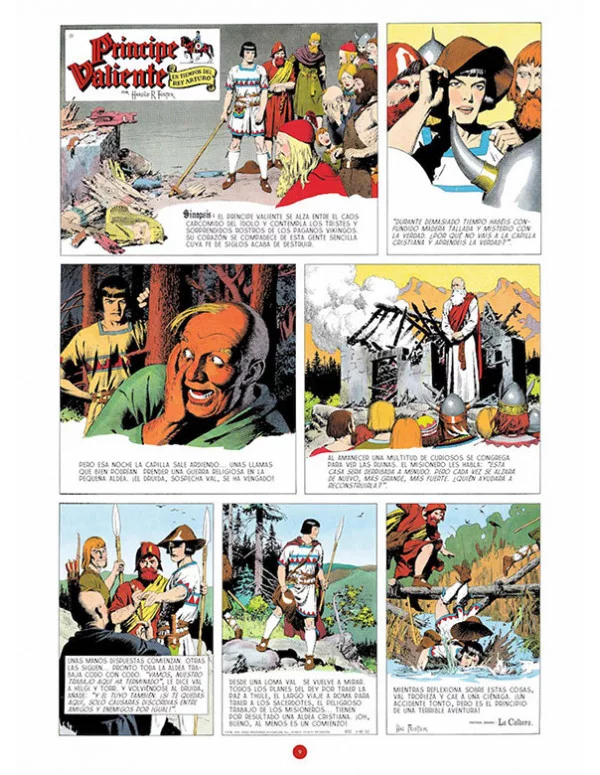 En los dos años que abarca este volumen, quizá por influencia de la película dedicada al Príncipe Valiente y el protagonismo de Sterling Hayden, que lo encarnó en la pantalla, el jovial Sir Gawain tiene sus principales momentos de gloria. Lo vemos visitar Thule, recorrer con Val el Mediterráneo y peregrinar a Tierra Santa, enfrentarse a los hombres del desierto sin perder la sonrisa, encandilar con sus tirabuzones a la hermosa hija del caíd bandido, sufrir los amores juveniles de una chica feminista adelantada a su tiempo y, sobre todo, dar muestra de su valía como guerrero en dos duelos con los que asegura, ante un difícil pero honrado enemigo y ante un pisaverde con ínfulas de gloria, la estabilidad del pequeño reino de Aleta.