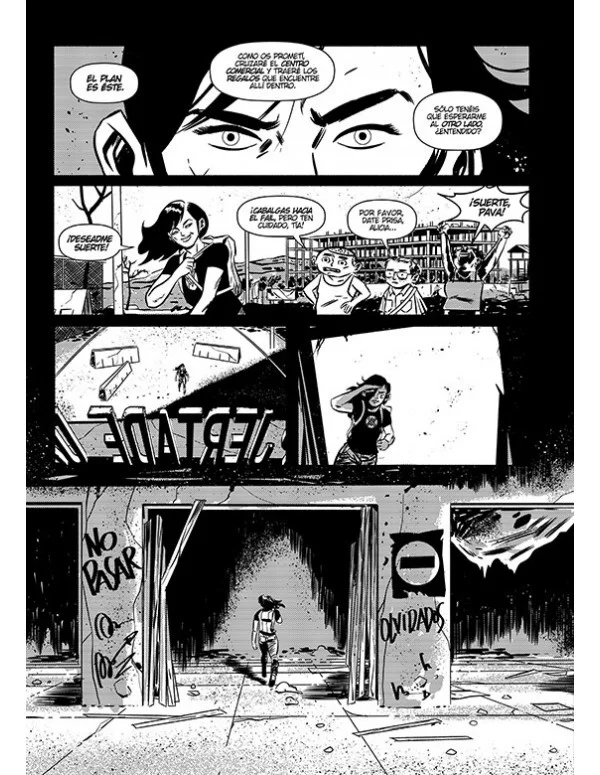 Este planteamiento que propone Luis Bustos en su nueva obra larga como autor completo tras los dos tomos de ¡García! (Astiberri, 2015 y 2016) realizados junto a Santiago García, le permite firmar un thriller futurista reflejo de un modelo sociopolítico en crisis, en el que se perciben referencias tanto a J. G. Ballard como a la película Sólo ante el peligro.