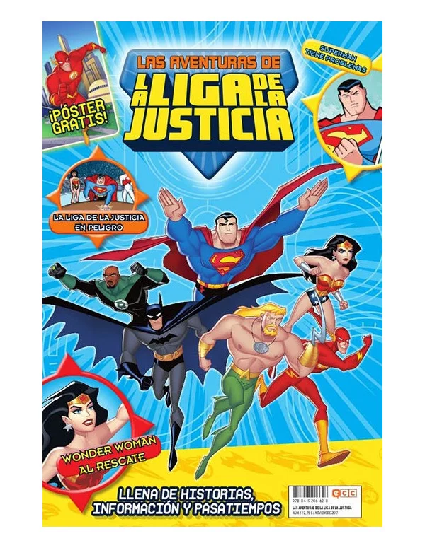 ¡Superman está metido en un buen lío! ¡La Liga de la Justicia está en peligro! ¡Wonder Woman acude al rescate! ¿Preparado para disfrutar en familia con tus héroes favoritos? ¡Ya está aquí la nueva revista Las aventuras de la Liga de la Justicia! ¡Una publicación mensual ideal para los más pequeños de la casa! ¡Cuando unos malvados alienígenas invaden la Tierra, Superman, Batman, Wonder Woman, Flash, Green Lantern, Aquaman y el Detective Marciano, iconos dentro y fuera de la gran pantalla, unen sus fuerzas para salvar el planeta... ¡y así nace la Liga de la Justicia! Disfruta con un cómic exclusivo del grupo y superando diferentes pruebas y pasatiempos. ¡Incluye un espectacular póster!