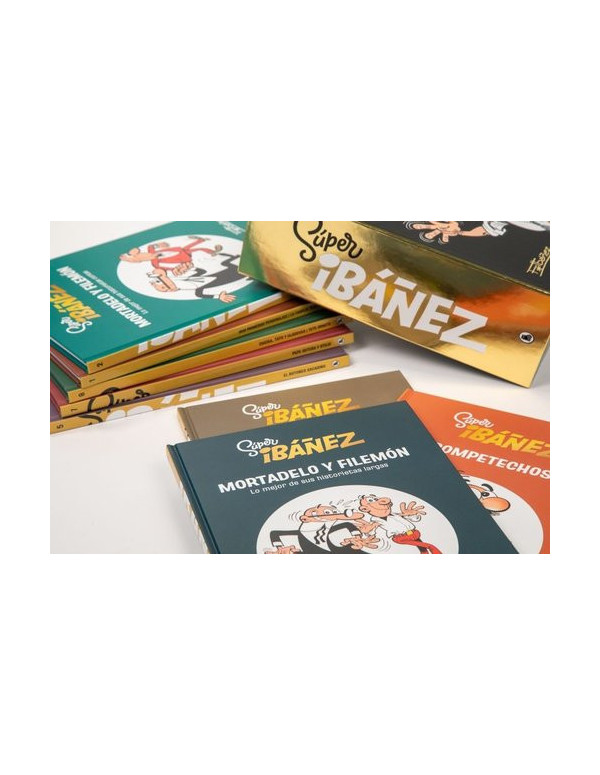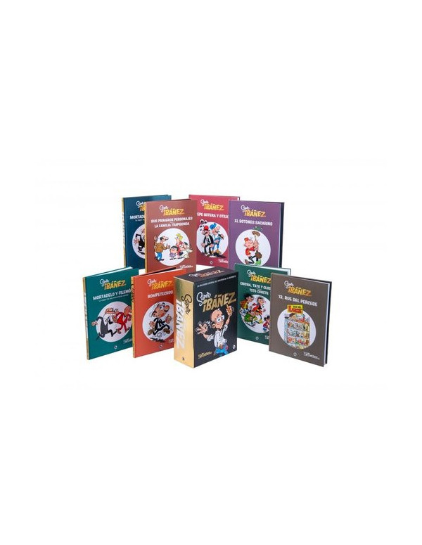 Un estuche único con los personajes que formaron parte de la vida de Ibáñez. Un regalo para atesorar toda la vida. En homenaje a todos los años de trabajo de Ibáñez, llegan ocho volúmenes exclusivos que hacen un repaso por su recorrido en el mundo del cómic de la mano de sus personajes más conocidos (y otros que no tanto) en un estuche perfecto para regalar estas navidades. Incluye, en exclusiva, varias historias cortas de Tete Cohete o Chacho, Tita y Clodoveo, los famosos personajes del Ibáñez de los 90, y páginas originales e inéditas de las series más conocidas. Con este indispensable regalo, todos los admiradores de los clásicos personajes del guionista y dibujante podrán releer y atesorar sus mejores historias.