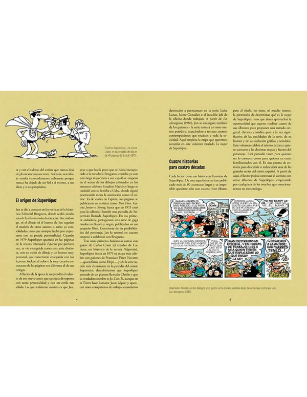 ¿Es Superman? No, mejor aún, ¡es Superlópez! El superhéroe nacional que se ha convertido en un referente del humor más disparato, la parodia y la crítica social. Una edición cuidada, con prólogo y textos críticos del divulgador de cómic Jordi Canyissà y material extra que encantará a todos los seguidores de la icónica colección Lo mejor de... Este tomo recoge una aventura por década buscando mostrar la evolución de la serie y certificar que Jan no ha dejado nunca de reflexionar sobre su trabajo buscando propuestas nuevas y renovadoras.