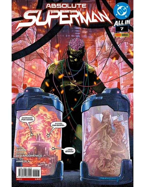 Cómic book (encuadernado con grapa) que incluye la edición en castellano del cómic originalmente publicado por DC Comics en EE.UU. como Absolute Superman #7