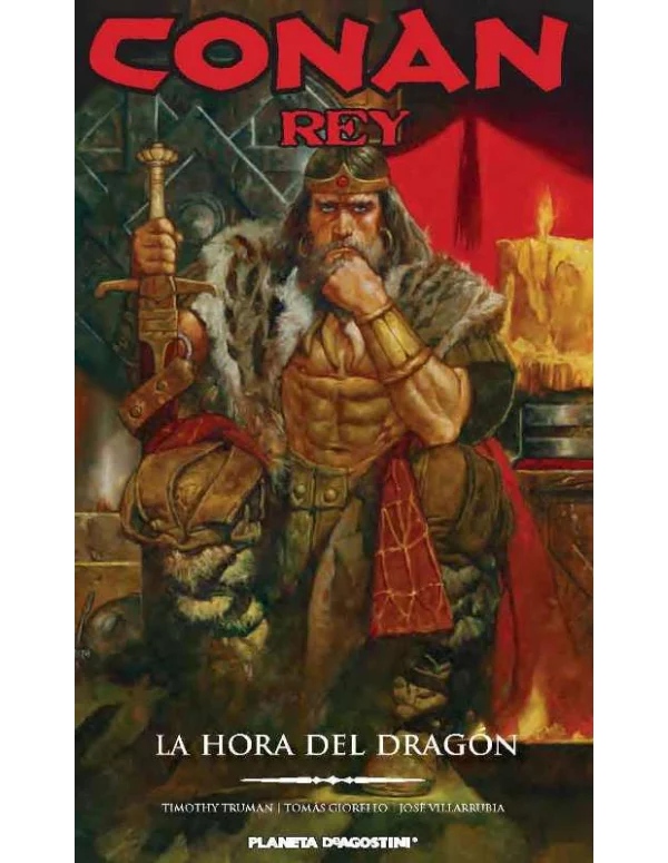 Destronado por una alianza traicionera respaldada por un hechicero reencarnado, Conan, el rey bárbaro de Aquilonia, debe abrirse paso a través de la mazmorra de un villano y a través de países consumidos por la batalla, en busca de una gema misteriosa que le ayudará a reclamar su reino. Recopila los números 1 a 6 de King Conan: The Hour of the Dragon. Es el complemento perfecto de Conan Rey: La ciudadela escarlata y Conan Rey: El fénix en la espada.