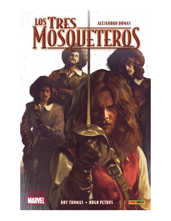 ¡Todos para uno y uno para todos! El legendario guionista Roy Thomas adapta junto al dibujante Hugo Petrus la inmortal obra de Alejandro Dumas, en el inimitable estilo de los Clásicos Ilustrados Marvel. París, 1625. Un joven llamado D'Artagnan trata de unirse a la elite del rey... ¡Los Mosqueteros! Junto a Porthos, Aramis y Athos, luchará contra los adversarios de la corona, mientras desde las sombras el temible cardenal Richelieu busca la manera de acabar con los Mosqueteros, lo único que le separa del trono de Francia.