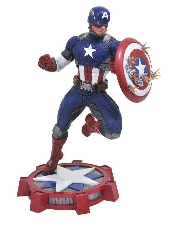 Diamond Select Toys presenta para la colección Marvel Gallery la figura de Steve Rogers, Capitán América, que se muestra luchando contra un oponente (o un ejército de ellos) mientras las balas rebotan en su escudo. Se trata de una figura de PVC, esculpida por Jean St. Jean que ofrece un alto nivel de detalle y que mide unos 25 cm de alto.