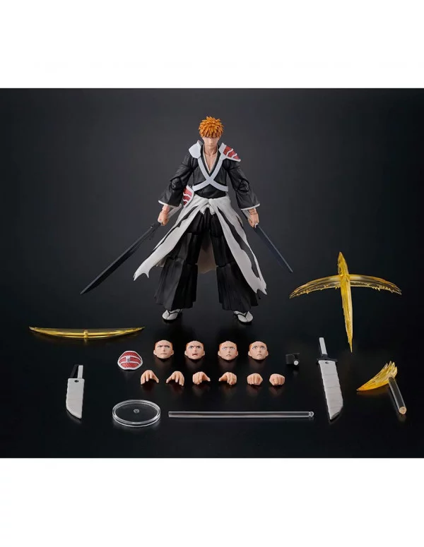 Tamashii Nations presenta, dentro de la colección S.H. Figuarts, la figura de Ichigo Kurosaki Dual Zangetsu version. El protagonista de "Bleach" mide 15,5 cm e incluye 4x caras alternativas, 3x efectos de corte, 1x protección, 6x manos alternativas, 2x espadas y una base con soporte para su exposición.