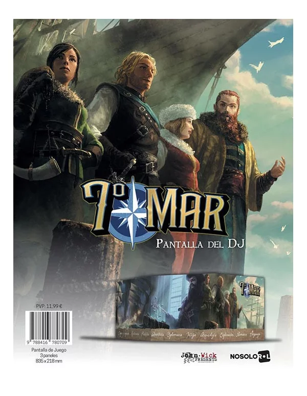 Tres paneles a todo color con una ilustración exclusiva de 7º Mar realizada expresamente para la ocasión, con una medida total de 835 x 218 mm.