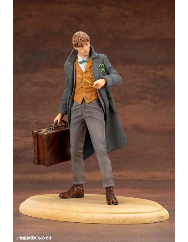 Estatua de Newt Scamander en escala 1/10, tamaño aprox. 18 cm. Modelo de la línea ARTFX+ de Kotobukiya. Viene con una base (distinta de la de la imagen)