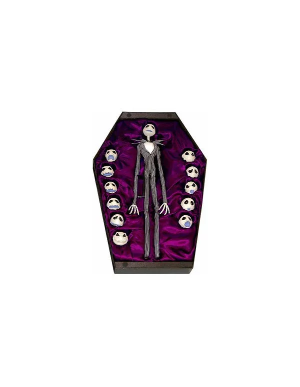 Jack Skellington, el protagonista de "Pesadilla antes de Navidad" y estrella de Halloween Town, regresa gracias a esta bonita edición de lujo y limitada a 1224 unidades, que llega de la mano de la prestigiosa firma Medicom. La figura, totalmente articulada y con esqueleto metálico, mide 45 cm. y se le pueden cambiar las expresiones del rostro con las doce cabezas intercambiables que vienen incluidas. Viene presentada en una cuidada caja numerada en forma de ataúd que se abre como un libro. Es, pues, una figura de colección que no puede faltar en las estanterías de ningún fan de este ya clásico film y del universo de Tim Burton en general.