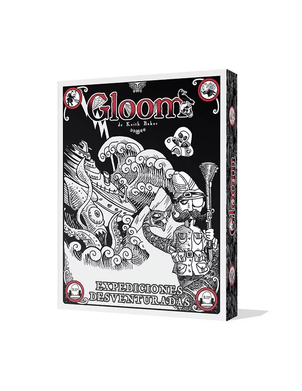 El infierno está en otros lugares Expediciones desventuradas añade obsesivas odiseas a Gloom con las cartas de Expedición que llevan a los jugadores por los lugares más letales del mundo, y además incluye un montón de nuevas cartas de Modificador, de Evento y de Muerte prematura.