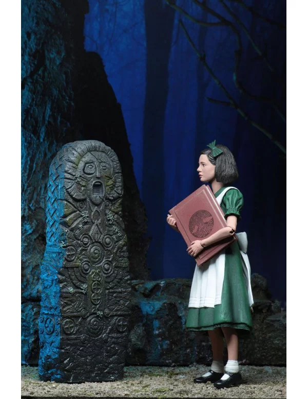 NECA nos presenta al personaje de la joven Ofelia, de unos 13 cm, basada en la película de 2006 de Guillermo del Toro "El Laberinto del Fauno" y anunciada en la San Diego Comic Con 2018. Se trata de una figura articulada y viene con varios complementos como tres hadas diferentes, una llave, un libro y un pequeño pilar con el ojo extraíble.