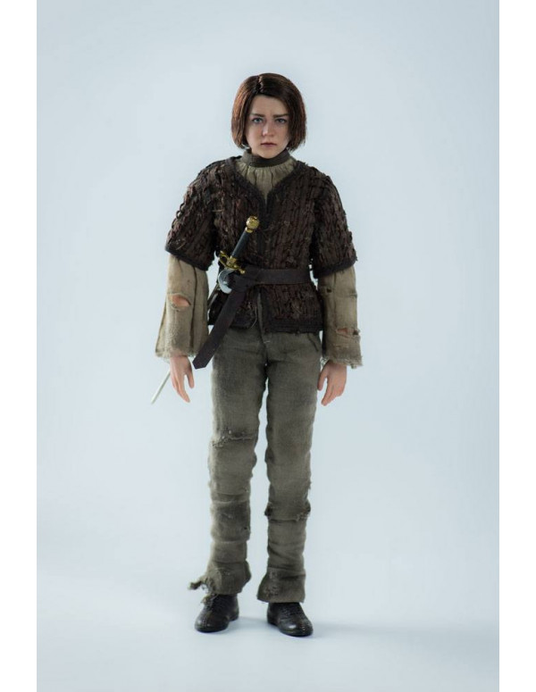 Threezero presenta la figura articuladas a escala 1/6 (25.5 cm) basada en la popular serie de TV Game Of Thrones. Se trata de Arya Stark, la menor de las hijas del señor de Invernalia. Esta figura viste con ropa finamente detallada como camisa, túnica, pantalones, cinturón y botas. La figura incluye su espada "aguja", un cuchillo y una bolsa de monedas, así como manos intercambiables. Sin duda una pieza de lujo que hará las delicias de todos los fans de esta popular serie basada en las novelas de George R.R. Martin.
