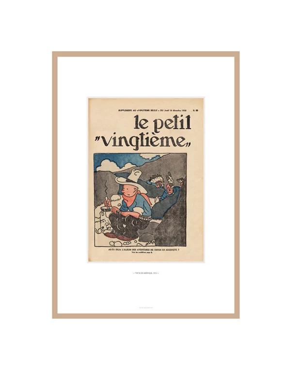 Litografía Tintín Le petit vingtième: Tintín en América