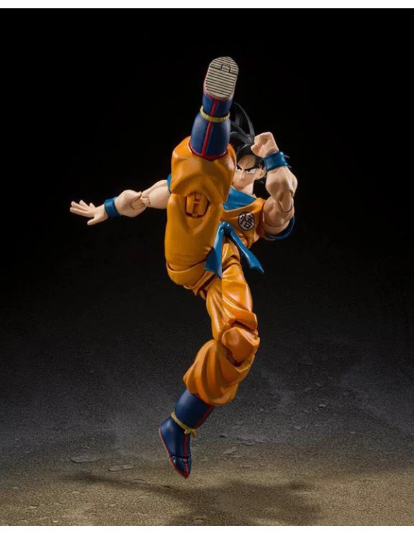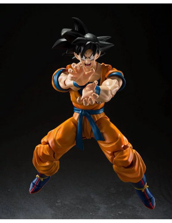 Bandai presenta para la colección SH Figuarts la figura de Son Goku tal y como aparece en la próxima película "Dragon Ball Super Hero"(2022). Esta figura articulada mide unos 14 cm y está hecha en PVC. Incluye manos y cabezas alternativas y ha sido pintada y esculpida tal y como se ve en el último trailer de la película.