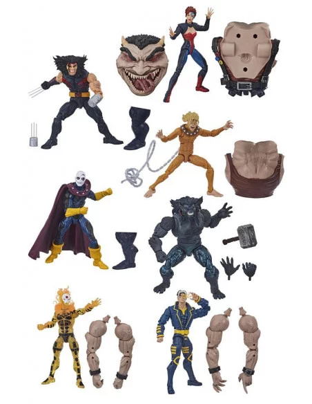 Las 8 figuras de la línea ´Marvel Legends´, tamaño aprox. 15 cm. Cada figura contiene piezas para otra figura (Sugar Man).
