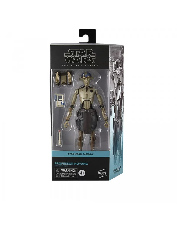 Hasbro presenta, dentro de la colección The Black Series, la figura de Professor Huyagang. Mide 15 cm y está basada en el personaje de la serie "Star Wars: Ahsoka". Cuenta con múltiples puntos de articulación y con detalles premium. Incluye 1x tableta Datapad, 1x sable de luz y 1x mochila con 2x brazos extras