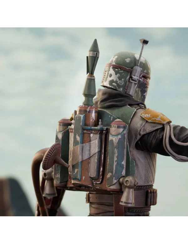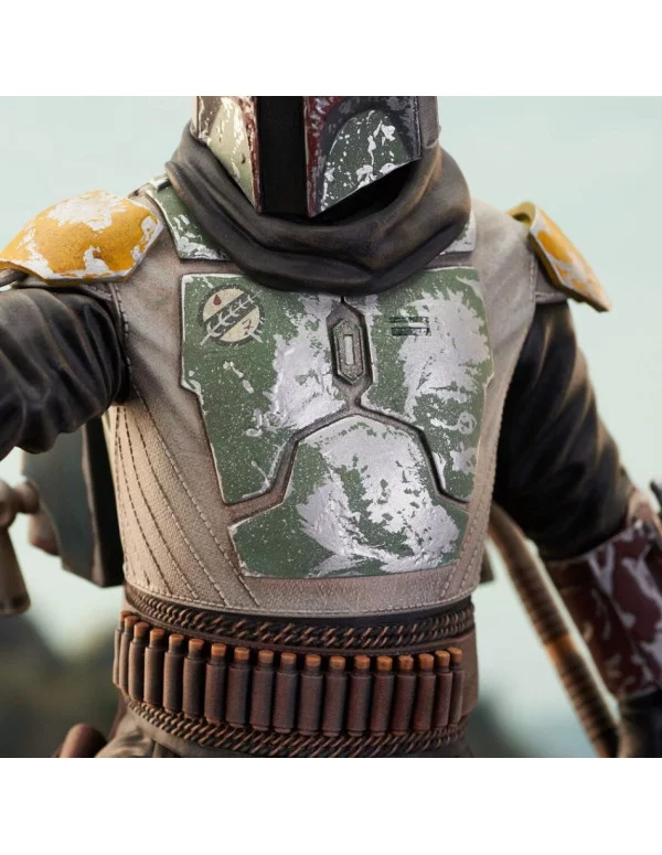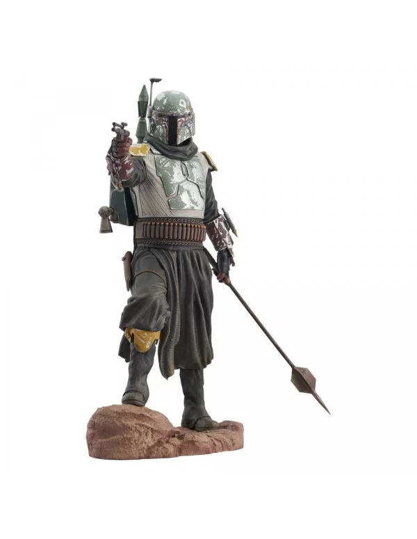 Diamond Select Toys presenta la figura de Star Wars Milestones de Boba Fett, basada en la serie El Libro de Boba Fett. La figura está hecha en resina y mide unos 30 cm. La figura muestra a Boba Fett con su nuevo traje negro, palo de gaderffi en la mano y apuntando con un blaster. Es una edición limitada a 2000 uds.y viene con certificado de auteticidad.