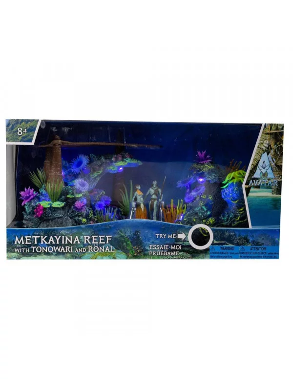 Figuras articuladas de la película "Avatar: el sentido del agua". Vienen en una caja con ventana. Cada figura viene con un efecto bioluminiscente que se activa con luz negra.Pilas necesarias (3x AG13/LR44, incluidas).