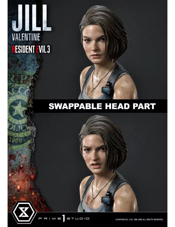 Estatua de poliresina de "Resident Evil 3" a escala 1/4, dimensiones aprox. 50 x 41 x 46 cm. Modelo finalizado y pintado a mano. Licencia oficial. Edición limitada.Esta versión viene con 2 cabezas intercambiables.