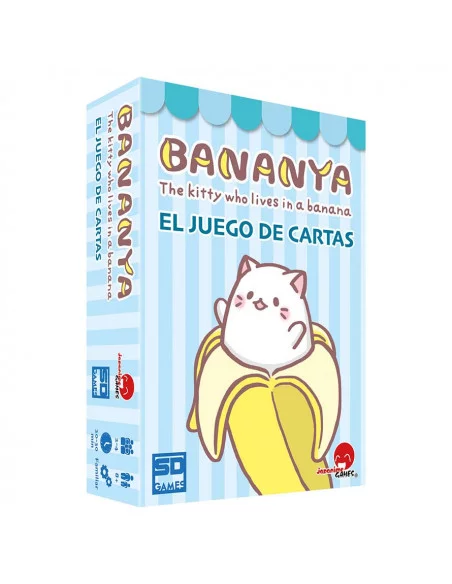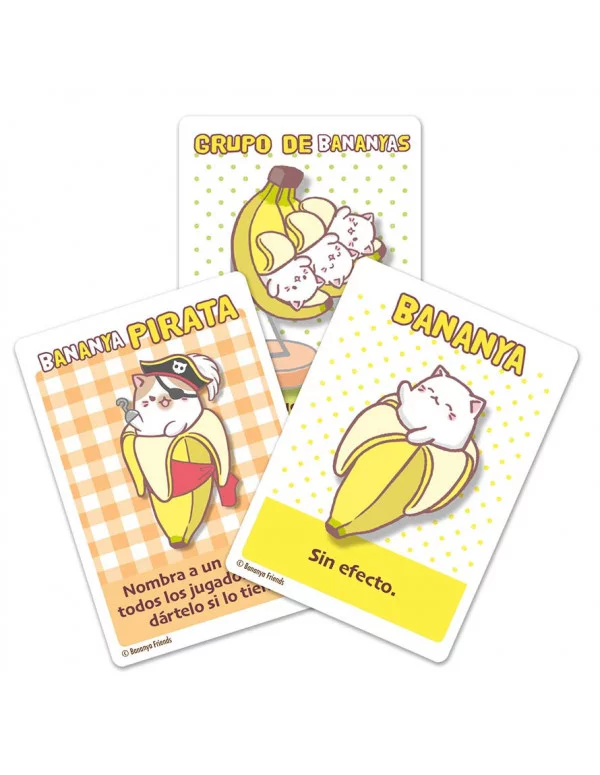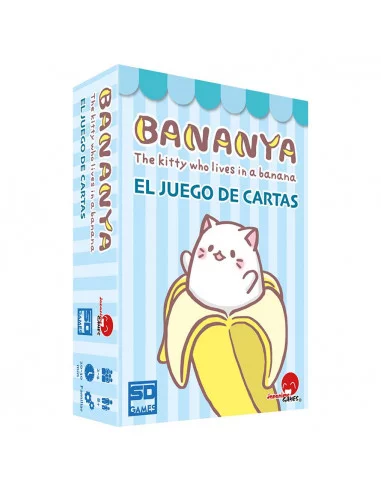 Prepárate para Bananya, un rápido juego de cartas que consiste en coleccionar estos adorables gatos que viven en un plátano! Reúne un juego completo de Bananyas antes que tus oponentes. Tú y hasta otros 3 jugadores robáis cartas, jugáis cartas para resolver sus efectos y obligáis a vuestros oponentes a poner cartas en la caja de arena. El primer jugador que consiga las 10 Bananyas del mismo tipo gana la partida, pero solo si gritan Nya!.