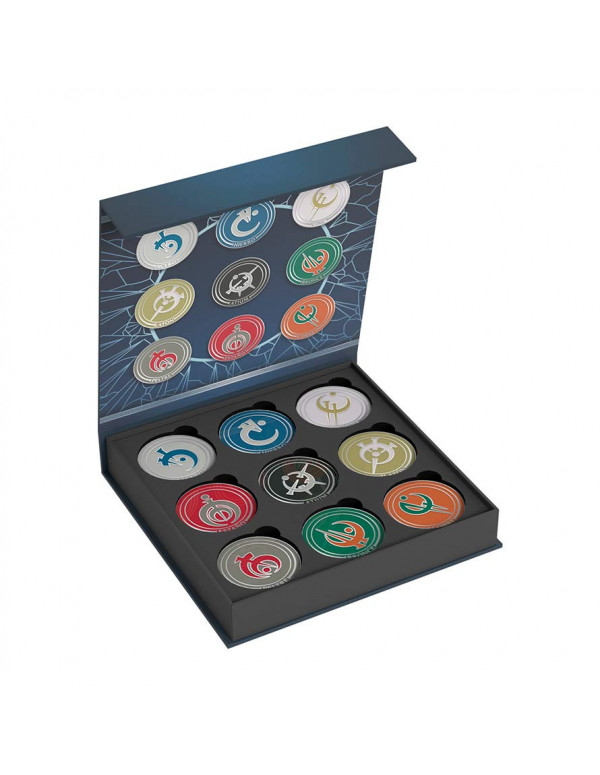Lleva tus partidas a Nacidos de la bruma, el juego de construcción de mazos, a otro nivel con este conjunto de fichas de metal esmaltadas de cada uno de los 9 metales del juego (hierro, acero, estaño, peltre, atium, bronce, cobre, latón y cinc). Estas fichas, también perfectas para los coleccionistas y amantes de la obra de Brandon Sanderson, vienen en un estuche exclusivo con cierre imantado.