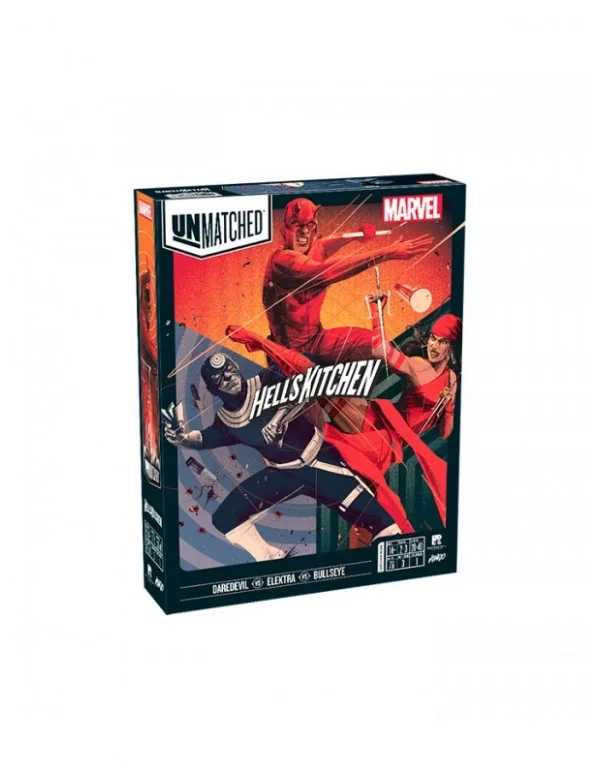 Unmatched Hell's Kitchen te plantea tomar el control de uno de estos tres superhéroe de Marvel dentro del universo de los combates imposibles de Unmatched: Daredevil, Elektra y Bullseye.