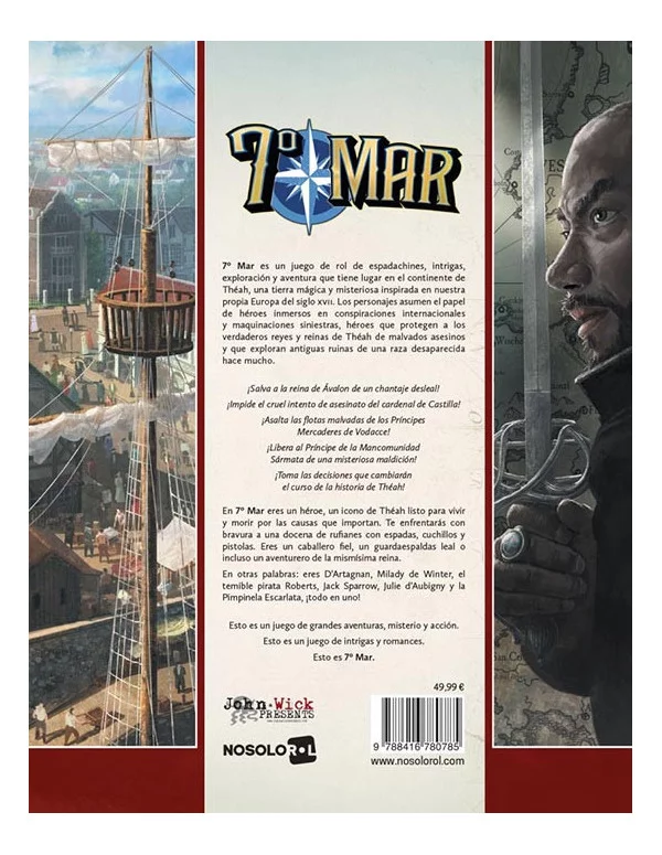 En 7º Mar eres un héroe, un icono de Théah listo para vivir y morir por las causas que importan. Te enfrentarás con bravura a una docena de rufianes con espadas, cuchillos y pistolas. Eres un caballero fiel, un guardaespaldas leal o incluso un aventurero de la mismísima reina.
