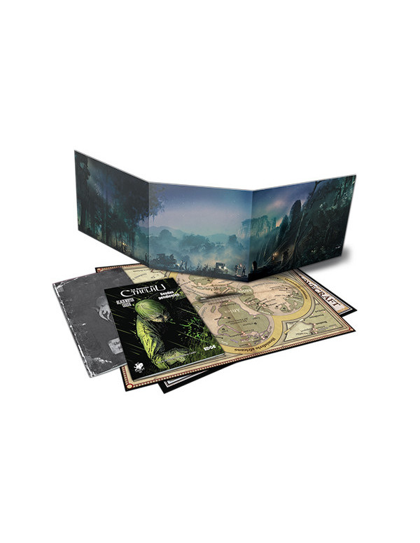 Dentro encontrarás dos aventuras listas para jugar ambientadas en la tierra de Lovecraft durante los años 20: “Blackwater Creek” y “Deudas pendientes”, doce investigadores pregenerados listos para jugar y mapas a todo color de la tierra de Lovecraft, el mundo de Cthulhu y el entorno de Arkham.