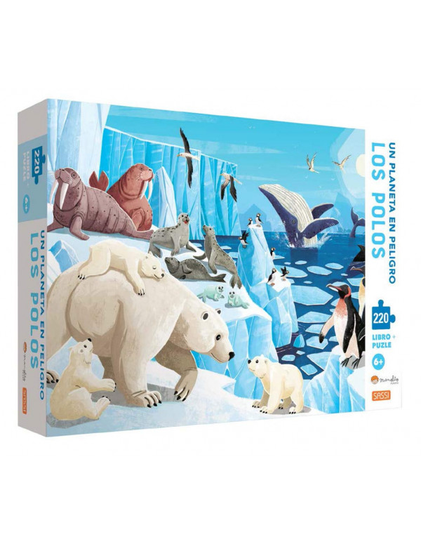 Una caja y un puzle con detalles iridiscentes, y un cuadernillo de 32 páginas para conocer el Ártico y la Antártida y reflexionar sobre las consecuencias que el cambio climático tiene sobre estos delicados ecosistemas.