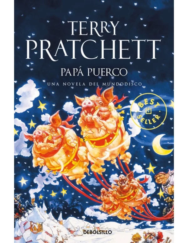 Ha llegado la Navidad al Mundodisco... Aunque allí tiene otro nombre y guarda muchas sorpresas.Terry Pratchett es uno de los escritores má s populares en la actualidad y el segundo en ventas del Reino Unido de spués de J. K. Rowling. Su aclamada serie del Mundodisco, con más de c uarenta millones de ejemplares vendidos, se publica en cuarenta países y cada nueva entrega es recibida con ansia por todos sus admiradores. ¿Su secreto? Nada escapa a la mirada inteligente, sagaz e irónica de este autor que, en la mejor tradición satírica británica, subvierte to dos los géneros y no deja títere con cabeza. De la serie del Mundodisc o han sido traducidos El color de la magia, La luz fantástica, Ritos i guales, Mort, Rechicero, Brujerías, Pirómides, íGuardias! ¿Guardias?, Eric, Imágenes en acción, El segador segador, Brujas de viaje, Dioses menores, Lores y damas, Hombres de armas, Soul Music, Tiempos interesa ntes, Mascarada, Pies de barro y El país del fin del mundo mundo.Es la Vigilia de los Puercos, la fiesta invernal que marca el año nuevo e n el Mundodisco. Los niños duermen y esperan que Papá Puerco baje por la chimenea y les deje sus regalos. Sin embargo, algo extraño está ocu rriendo. El visitante no es un anciano tripudo de barba blanca. Recuer da más bien a un esqueleto. No se aclara mucho con el almohadón que ll eva atado a la cintura debajo del traje rojo. Exclama «íJo, jo, jo jo! » en tono fúnebre y parece más acostumbrado a usar la guadaña que a re partir caramelos dentro de los calcetines. Pero alguien tiene que hace r el trabajo, porque Papá Puerco está... Bueno, a falta de palabra mej or, muerto. Y si para mañana por la mañana no creen en él las suficien tes personas, el sol no asomará por el borde del mundo. En esta nueva novela (que debería llevar un aviso en portada por su tremenda adictiv idad) el destino del Mundodisco queda en manos del auténtico sentido d e la fiesta más entrañable del calendario, que es poner regalos bajo e l árbol y comer h Guardia de Ankh-Morpork, en una historia de in triga con la que Pratchett demuestra una vez más que las investigacion es policiales en el Mundo disco siempre deparan más de una sorpresa.