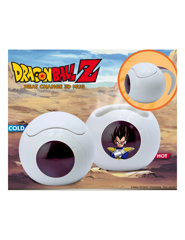 Esta taza de Dragon Ball 3D representa la nave utilizada por los saiyans para viajar por el espacio. ¡Vierte tu bebida caliente en ella para hacer que Vegeta aparezca!