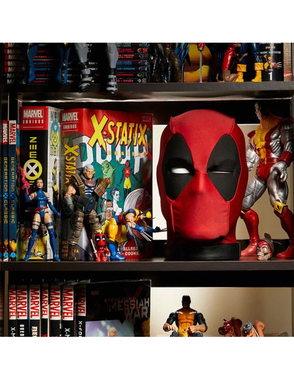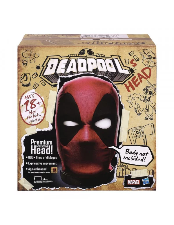 La cabeza Marvel Legends de Deadpool es un artículo coleccionable, premium, electrónico, interactivo y optimizado por app con más de 600 efectos y frases, múltiples sensores, motores, y movimientos expresivos. Gracias al app gratis, puedes hacer que Deadpool les diga chistes, bromas e insultos a tus amigos y seres queridos, o que te despierte por las mañanas, incluso a tiempo. Con un diseño inspirado en el mercenario bocón, esta cabeza de Deadpool es un magnífico artículo coleccionable para cualquier fan (Nota: aunque te amenace, la cabeza de Deadpool no te asesinará. Se quedaría muy sola).