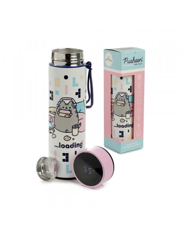 - Termo, licencia oficial de "Pusheen"- Material: acero inoxidable- Capacidad: 450 ml- Con termómetro digital