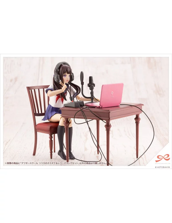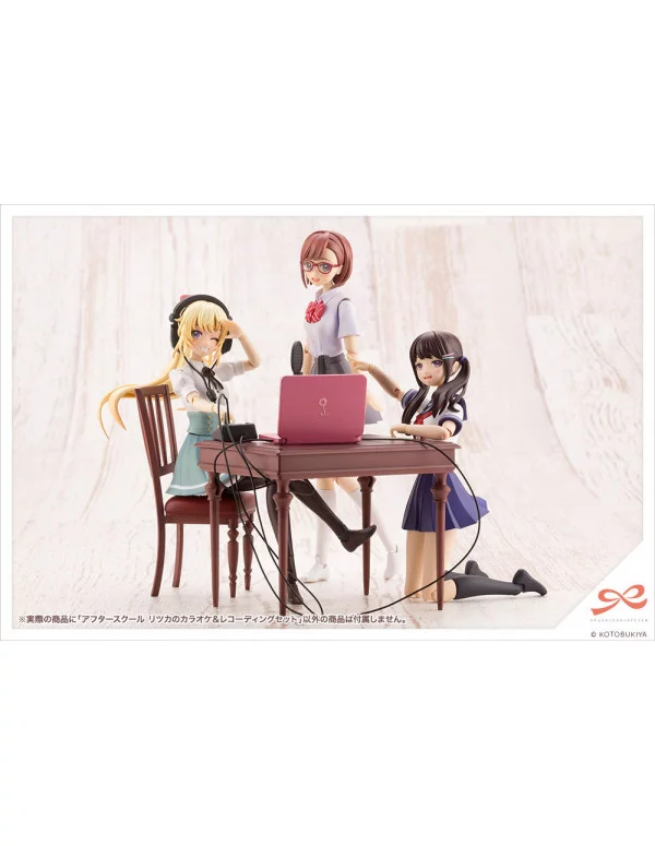Pack de accesorios de la línea "After School" para las figuras Sousai Shojo Teien Plastic Model Kit de Kotobukiya.Contenido:1. Ritsuka Saeki Dazzling Face (Pre-Painted) x12. Ritsuka Saeki Dazzling Face (Unpainted) x13. Ritsuka Saeki Sobbing Face (Pre-Painted) x14. Ritsuka Saeki Sobbing Face (Unpainted) x15. Headphones x1 Set6. Recording Mic x1 Set7. Mic Stand (Straight) x1 Set8. Mic Stand (Tabletop) x19. Laptop x1 Set10. Mixer x1 Set11. Karaoke Mic x112. Karaoke Tablet x113. Maracas x2 Types14. Tambourine x215. Cables x2(For use with the headphones, recording mic, laptop and mixer. To be cut to the desired length.)16. Expression Decals x1 17. Karaoke Tablet / Laptop Screen Decals x1"